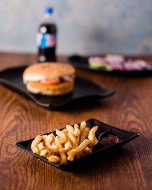 Upgrade your dining experience with our Chilla Platter, a sleek and modern serving solution designed for style, convenience, and versatility. Perfectly sized at 20 cm x 12 cm, this black rectangular platter is ideal for serving Chillas, dosas, side dishes, appetizers, or sushi. Its sophisticated design and matte black finish make it a must-have addition for home kitchens, restaurants, and catering services.