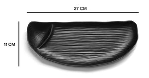 "Shop Chip n Dip Platter with Built-in Dip Section online. Perfect for fries, nachos, pakoras & snacks. Sleek matte black serving platter for parties, cafés & home use."
