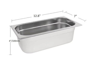 1/3 Size (approximately 12.8 inches by 7 inches): Perfect for smaller portions and side dishes, allowing you to create efficient multi-pan setups in professional kitchens and buffets.