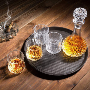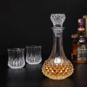 Elevate your sipping experience with the Longchamp Crystal Decanter Set, a timeless centerpiece for the refined bar or lounge. Inspired by vintage European crystal craftsmanship, this ornate whiskey decanter and glass set features a stunning cut-glass diamond pattern that reflects light beautifully and exudes pure sophistication.