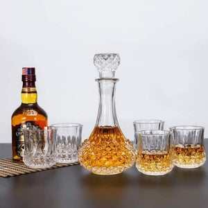 Longchamp Crystal Decanter Set – Luxury Whiskey Decanter with Diamond-Cut Glasses (6-Piece)