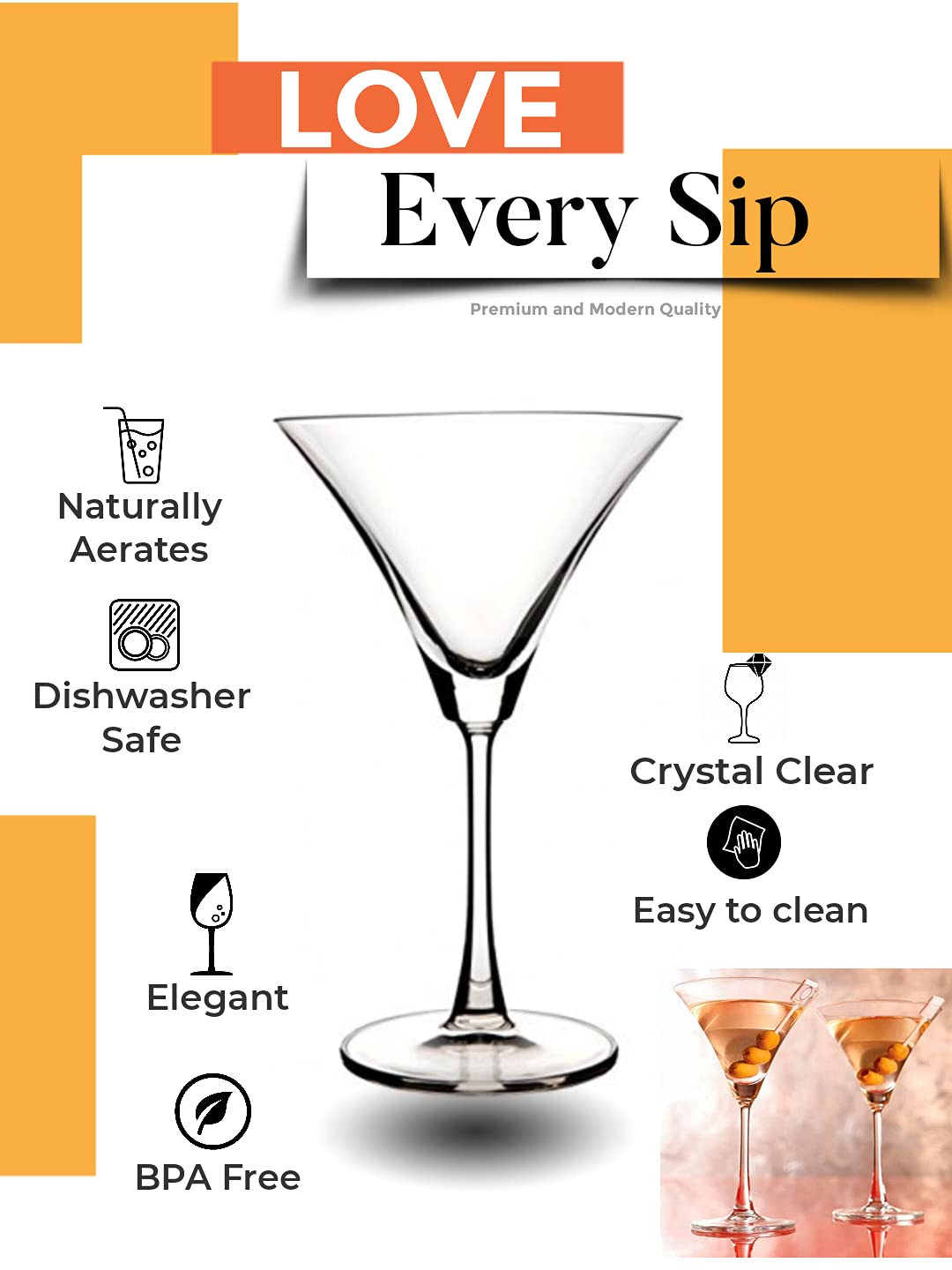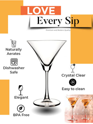 Martini Cocktail Glass – Elegant Crystal Clear Stemware for Classic Cocktails & Mixology 285 ml