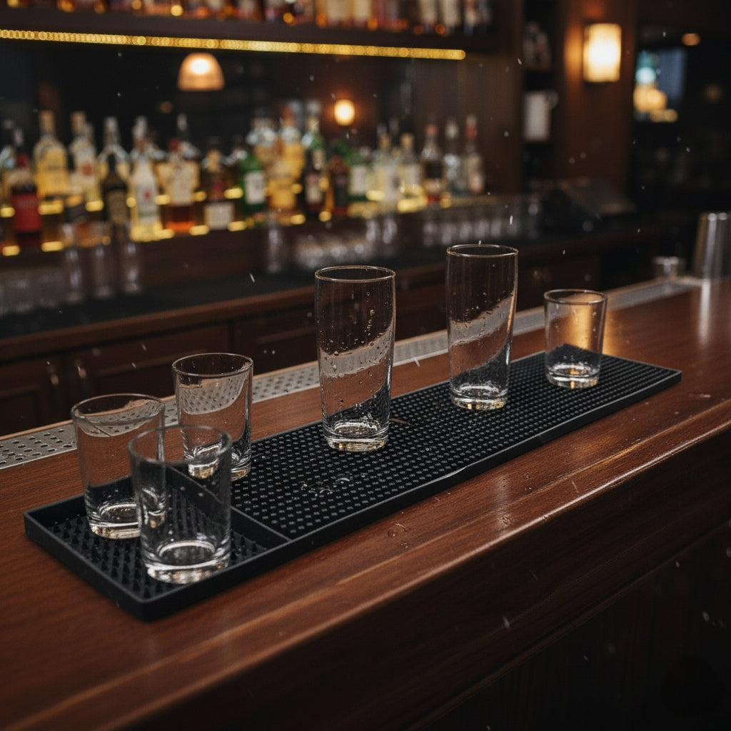 Upgrade your bartending game with this premium long rubber bar mat, designed to catch drips, secure glassware, and streamline your drink prep area. Whether you run a busy pub or love hosting friends at your home bar, this bar service strip mat is an essential tool for a clean, organized countertop.