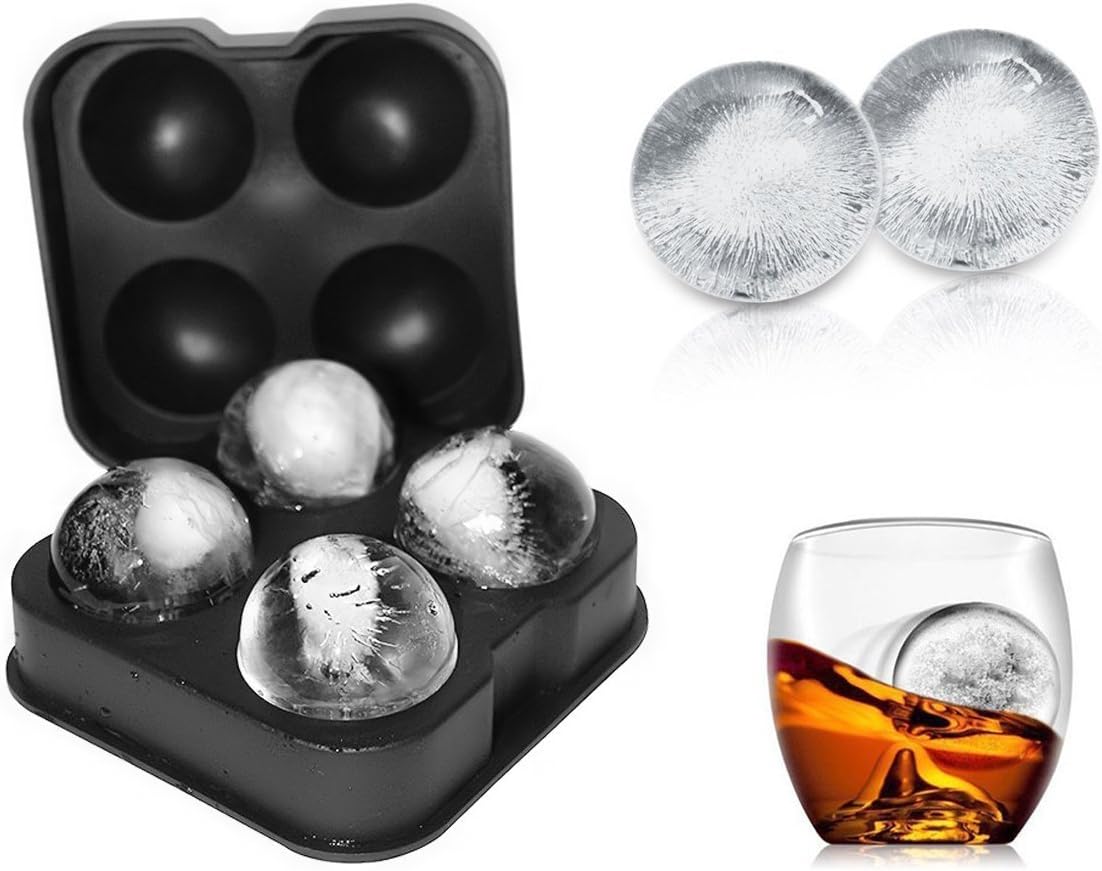 🧊 4-Cavity Silicone Ice Ball Maker – Perfect Spheres for Whiskey, Cocktails & More