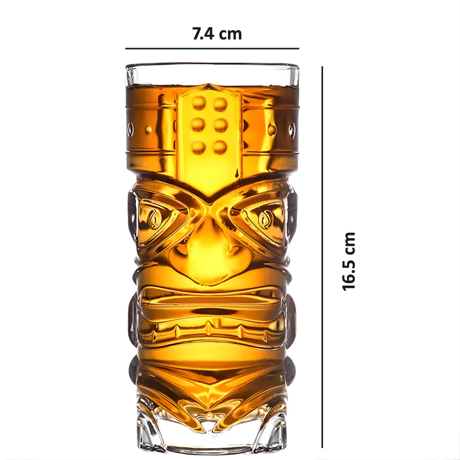 Tiki Face Highball Glasses – 16.5 cm Tall | 7.4 cm Wide | 16 oz Capacity – Durable Crystal Glass for Cocktails, Rum, Whiskey, Mai Tai & Tiki Drinks